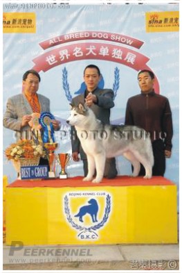 2005年03月 牽引哈士奇犬FLE于北京犬展取得BIS獎(jiǎng)勵(lì)。