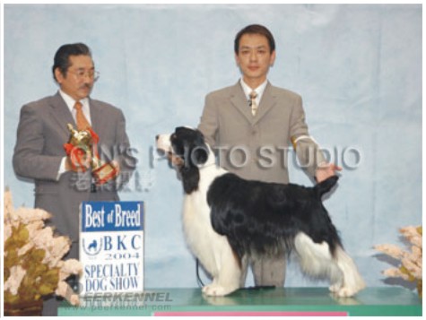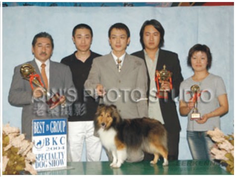 2004年09月 牽引喜樂蒂牧羊犬菲冰于北京犬展取得BIS獎(jiǎng)勵(lì)。