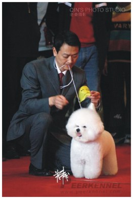 2007年10月 牽引松獅犬TO BE TOP ONE于北京犬展取得BIS獎(jiǎng)勵(lì)。