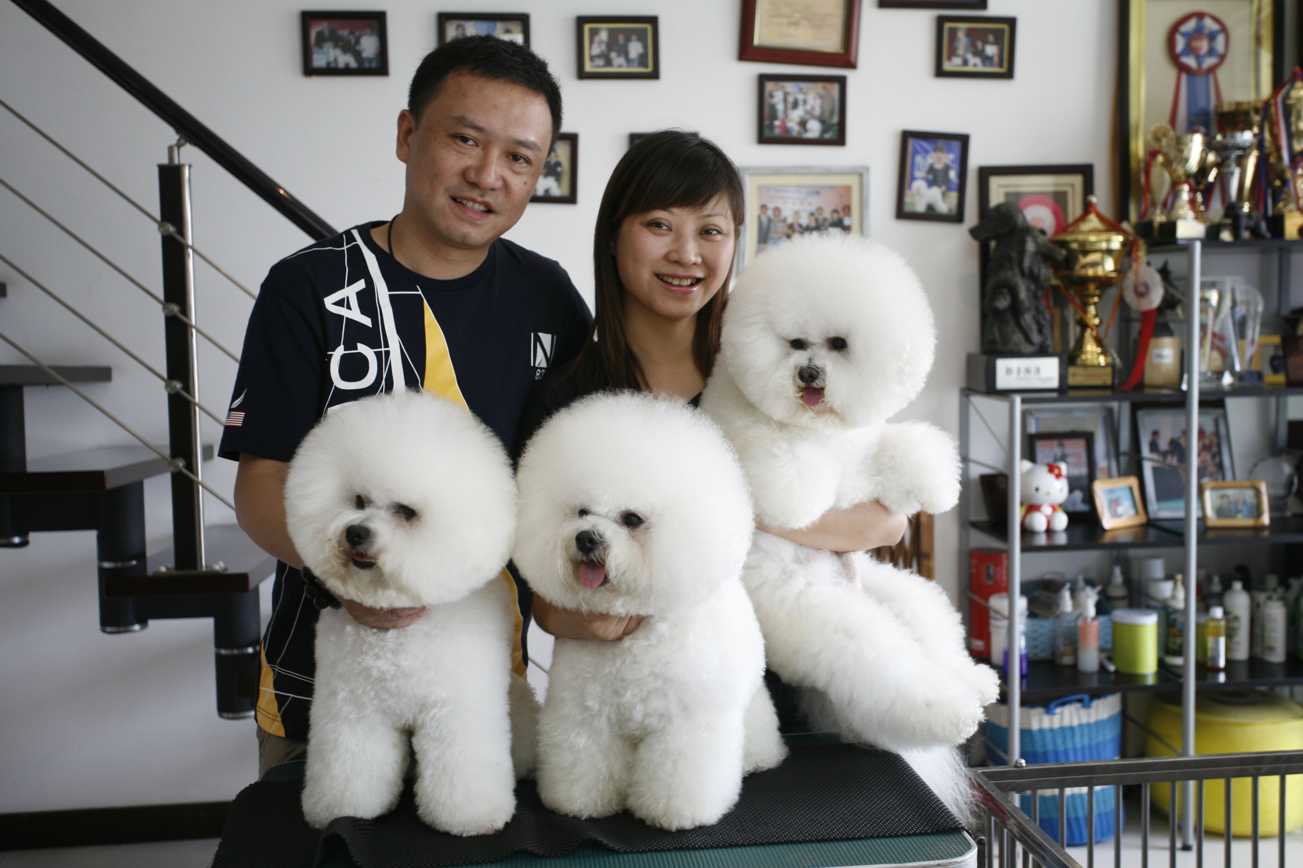 圍繞著狗狗這條主線,范丹負責學校,門店等一些美容技術方面工作,比如教授學生,外出講課,出國比賽等。張松則負責開拓市場,宣傳行業知識,讓更多的人了解狗狗,正確認識和對待狗狗。寶劍鋒從磨礪出,梅花香自苦寒來,常年的付出讓專業的夫妻倆倍受歡迎,而寵物及其主人們、朋友們則回饋給他們更多的信任和支持。