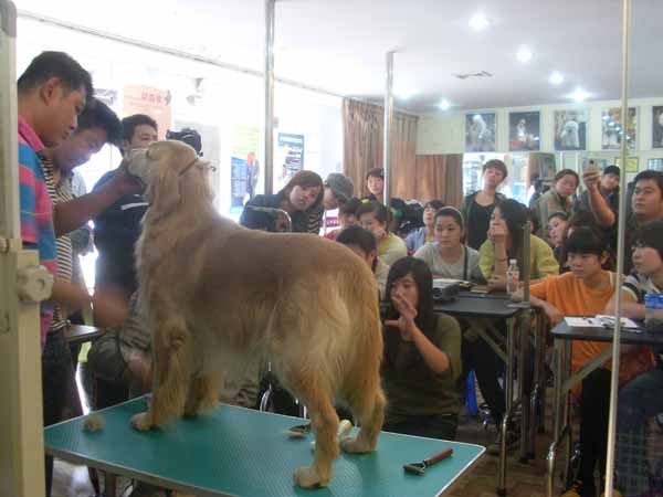 威廉大師在犬展期間蒞臨我校,專門為學員們上了堂金毛美容課