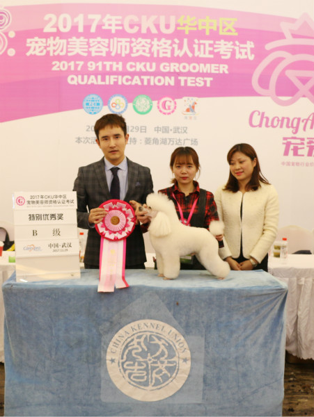 武漢貴族寵物美容培訓學校優秀學員劉小曼同學榮獲2017年CKU美容認證考試B級特別優秀獎