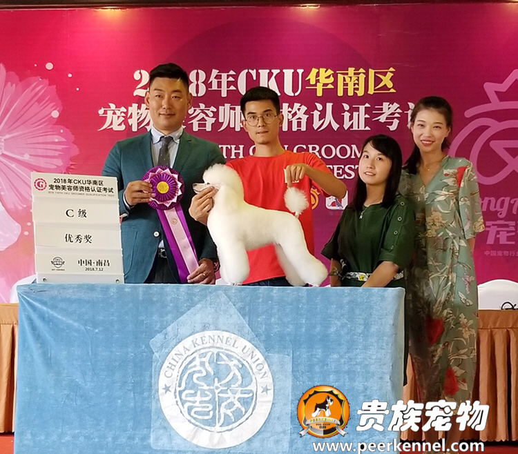 武漢貴族寵物美容培訓學校優秀學員蘇城坤同學榮獲2018年CKU美容認證考試C級優秀獎