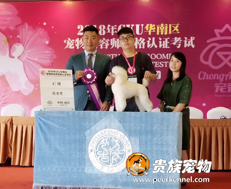 武漢貴族寵物美容培訓學校優秀學員朱彬楷同學榮獲2018年CKU美容認證考試C級優秀獎